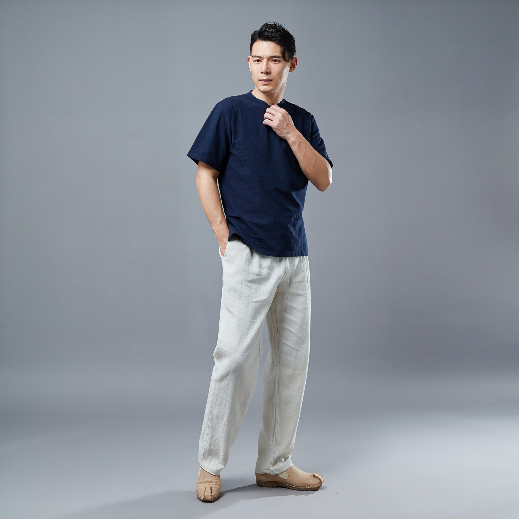 Diese weite Hose besteht aus 85 % Leinen und 15 % Baumwolle, was so bequem ist, dass Sie sie auch für Yoga, Meditation usw. tragen können.