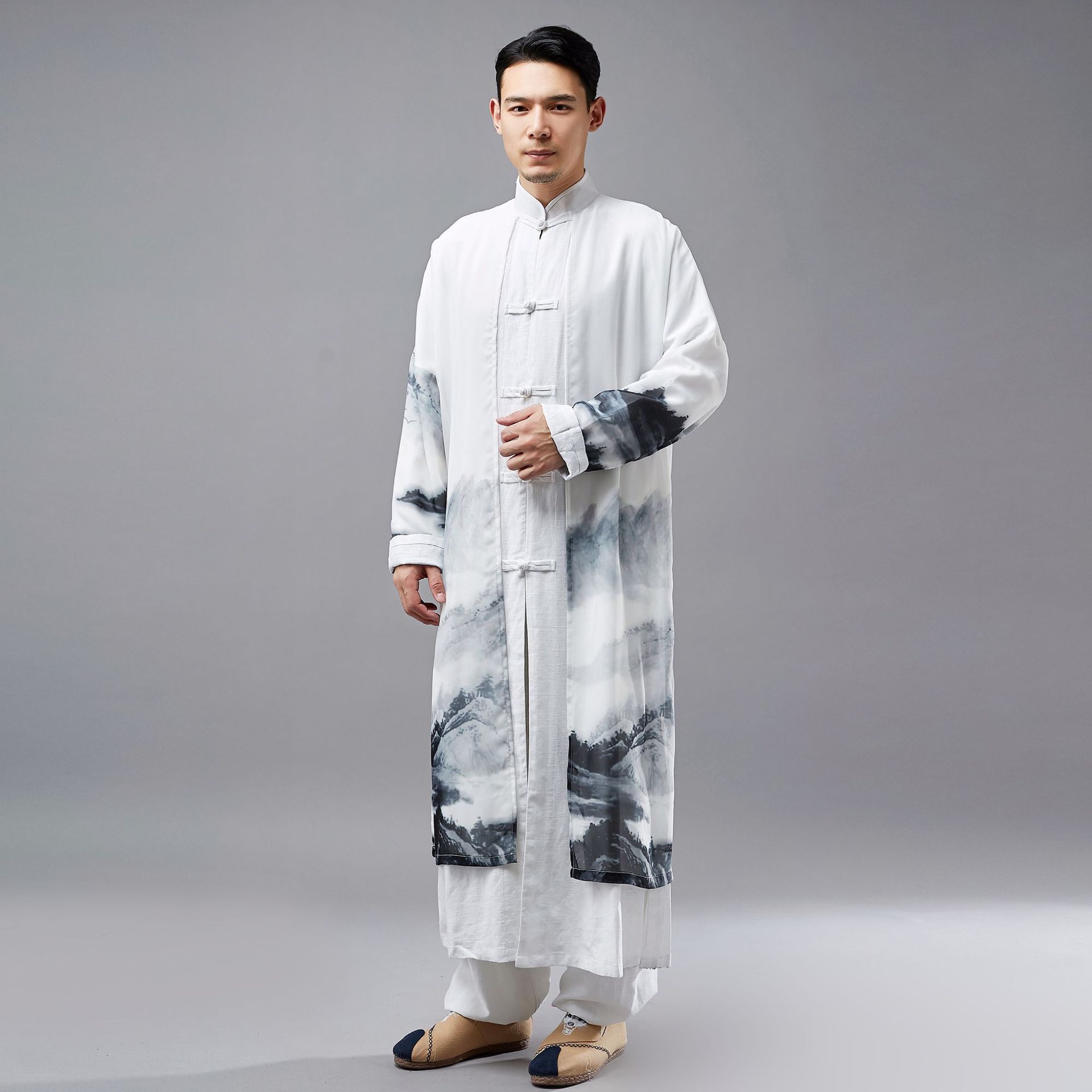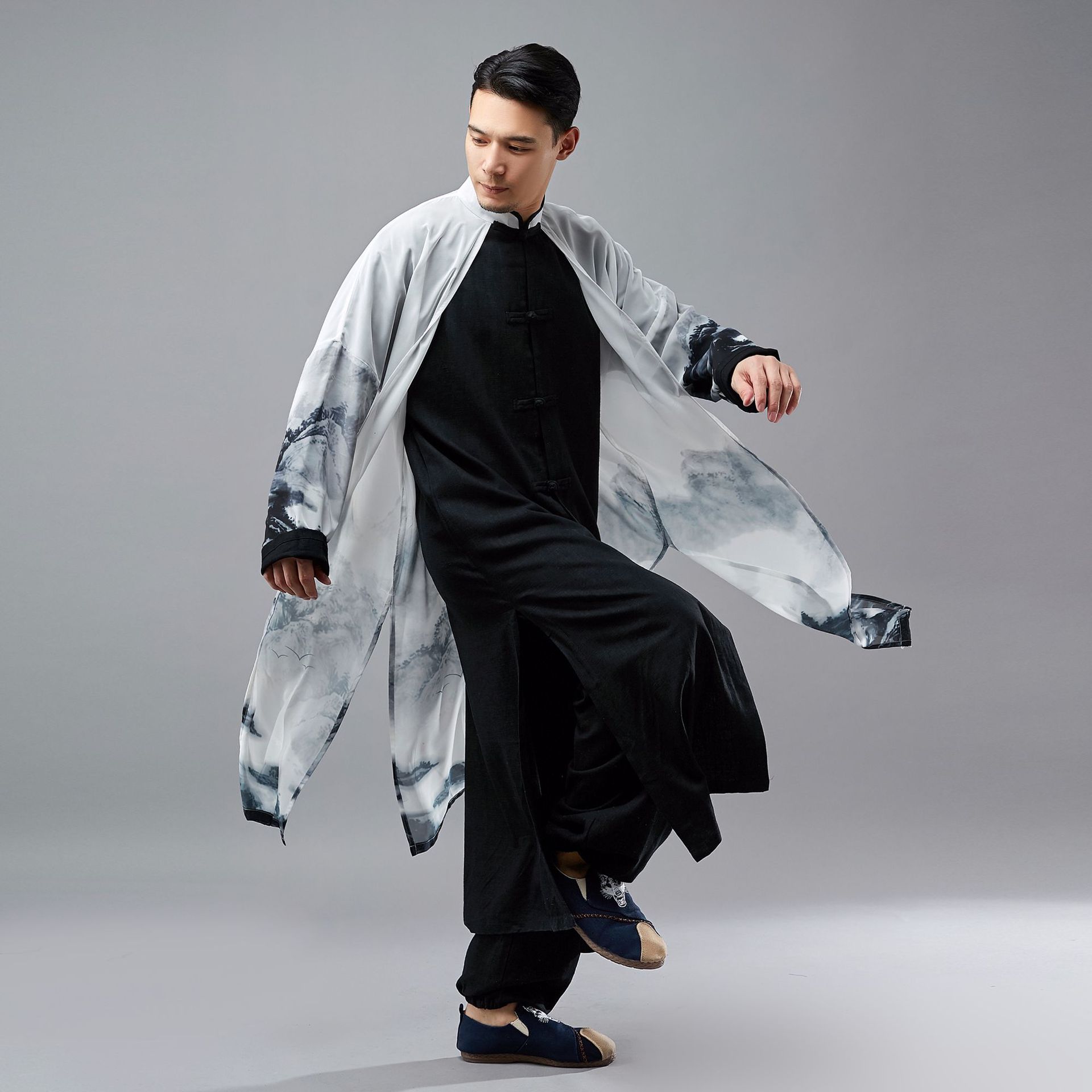 This stylish and top-quality Chinese Hanfu 2in1 robe is designed for tea ceremony and also ideal for yoga, meditation, Taichi and so on.