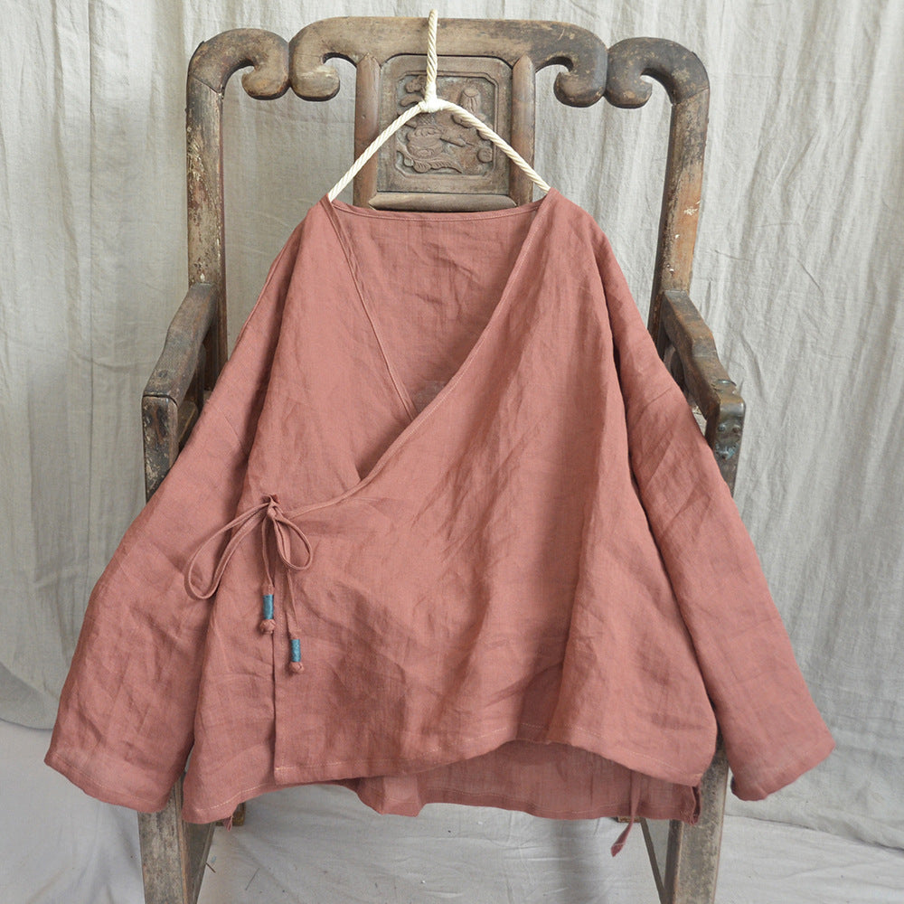 Ramie Linen Cotton Women Quilted Jacket with Pockets & Color-block Buttons in Hanfu Style, Chinese style Hanfu 251123w