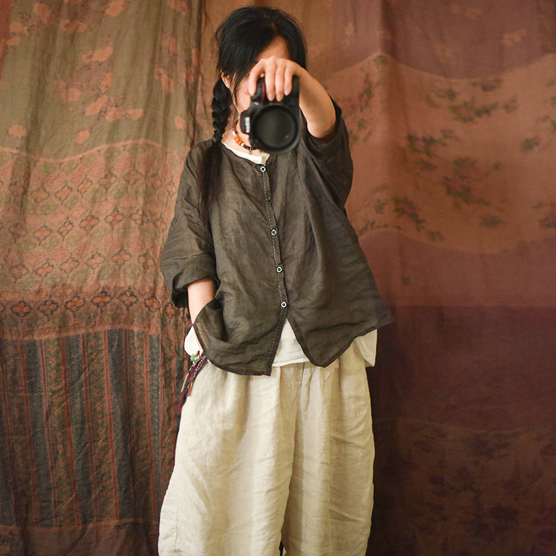 Ramie Linen Cotton Women Quilted Jacket with Pockets & Color-block Buttons in Hanfu Style, Chinese style Hanfu 251121w